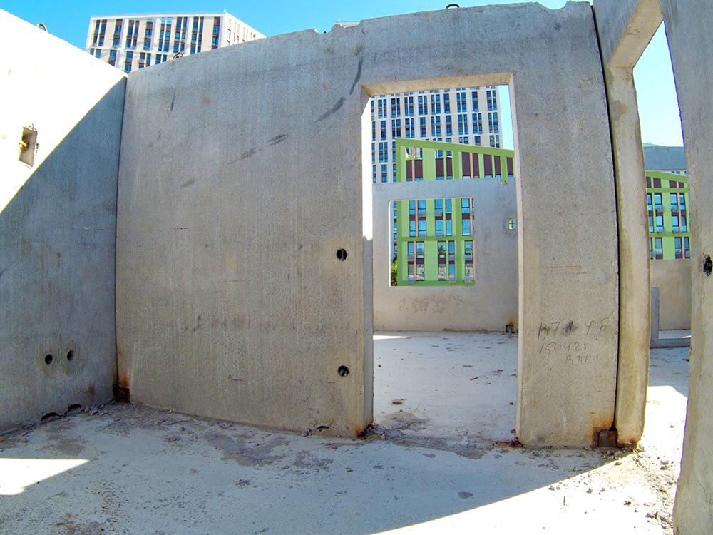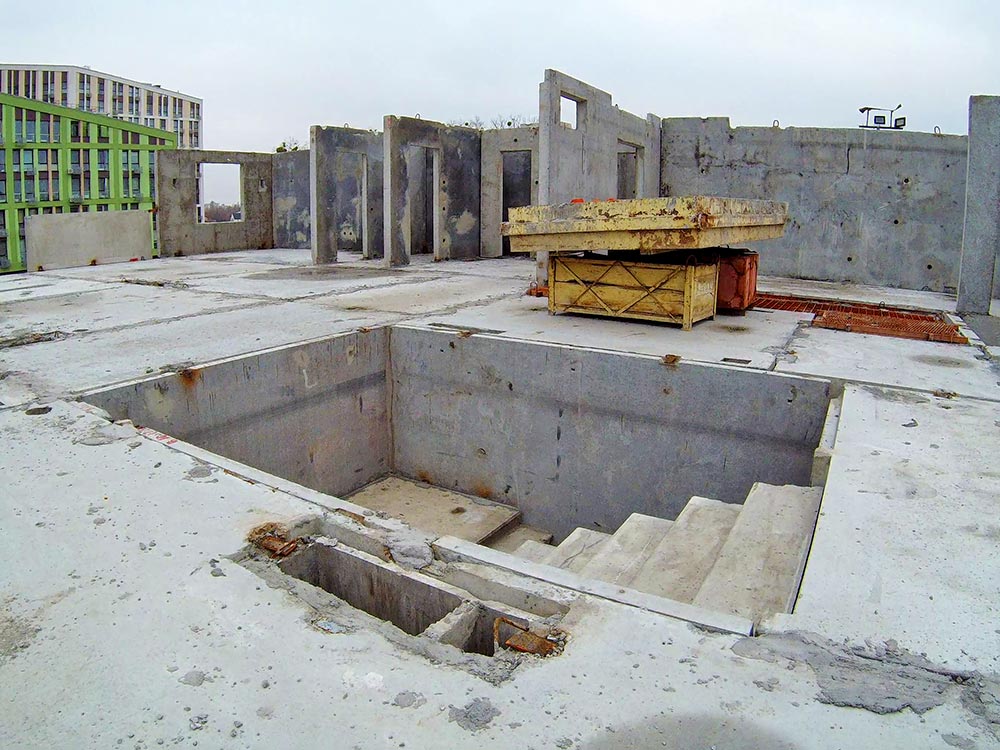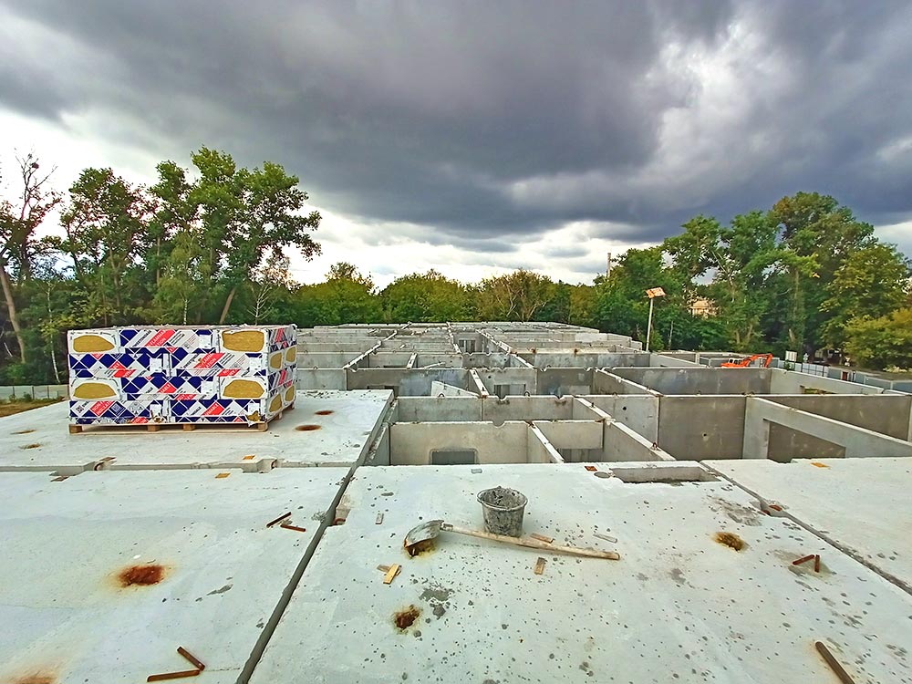 Стіни виконані з залізобетонних панелей заводського виготовлення з додатковим зовнішнім утепленням, що забезпечує енергоефективність та комфорт у будь-яку пору року.